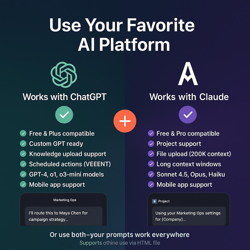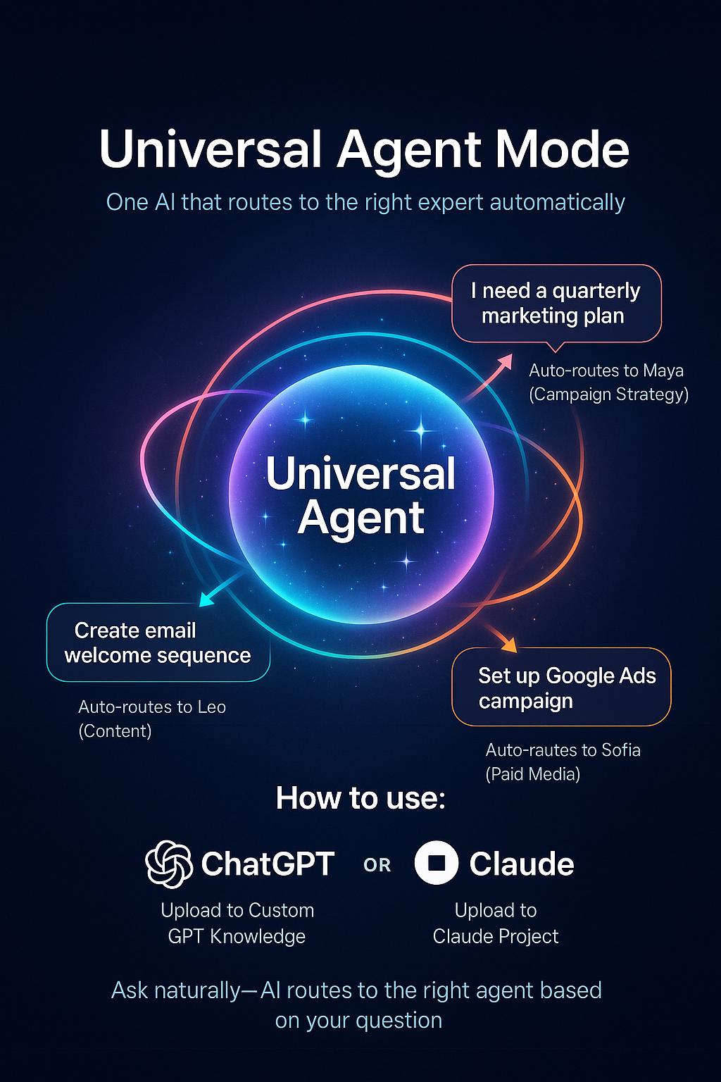 ✅ Universal Agent Mode - Upload to ChatGPT/Claude for automatic agent routing - No manual switching required