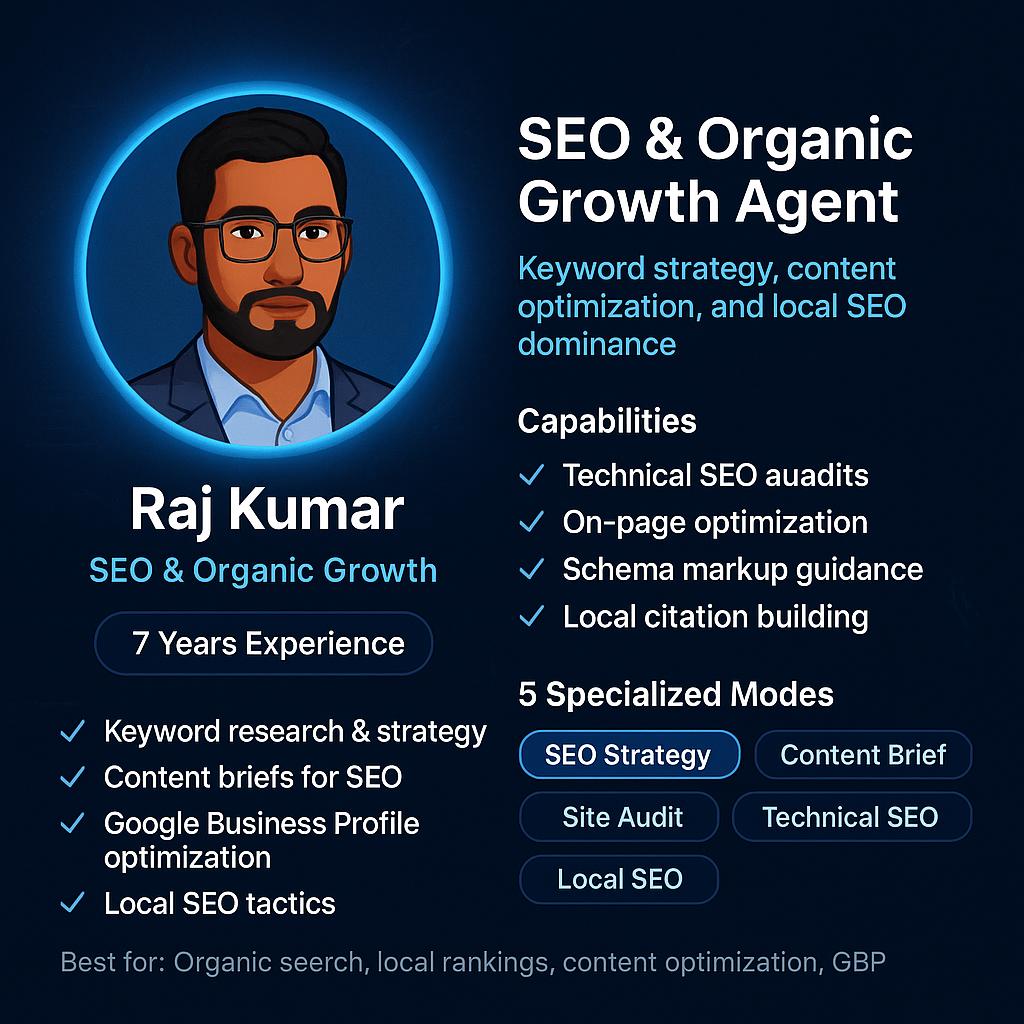 Raj Kumar (SEO): Local SEO, content briefs, GBP optimization