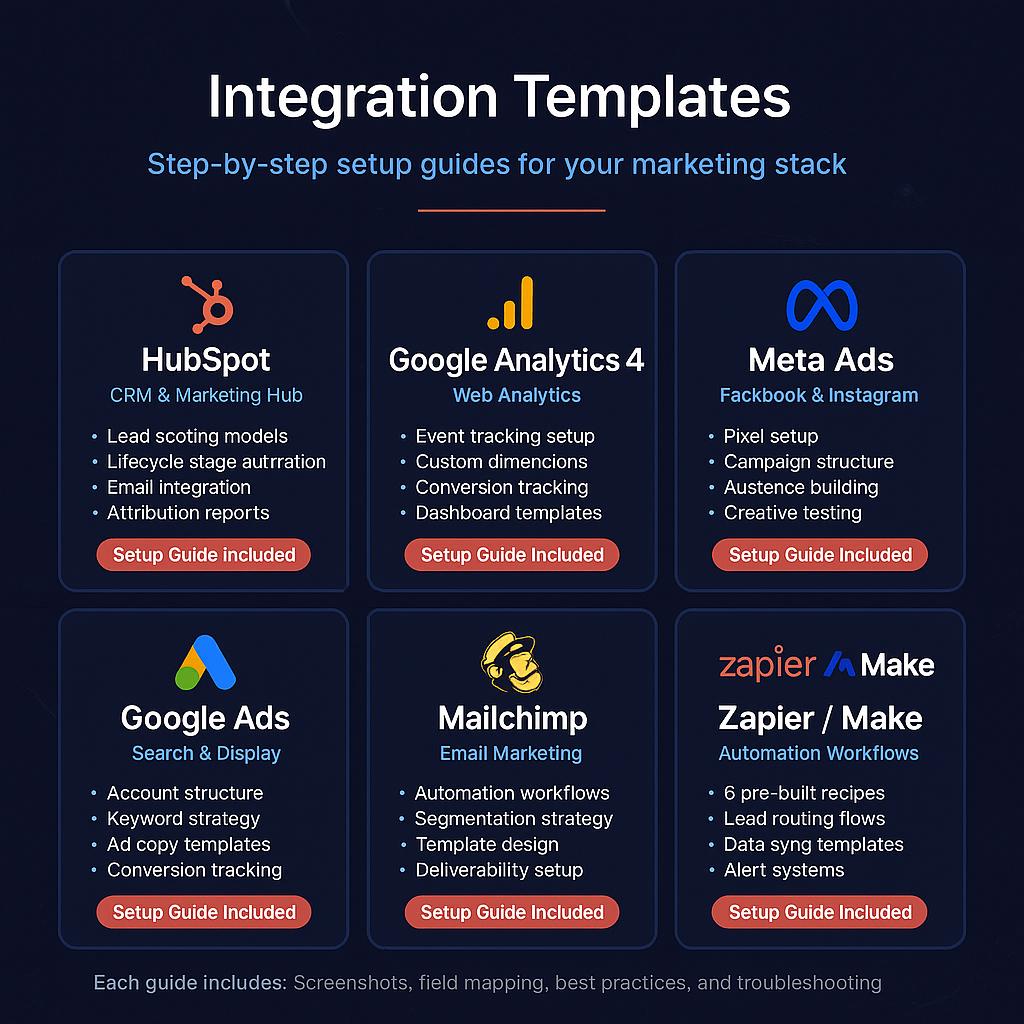 ✅ Integration Templates - HubSpot, GA4, Meta, Google Ads, Mailchimp, Zapier - Step-by-step setup guides included