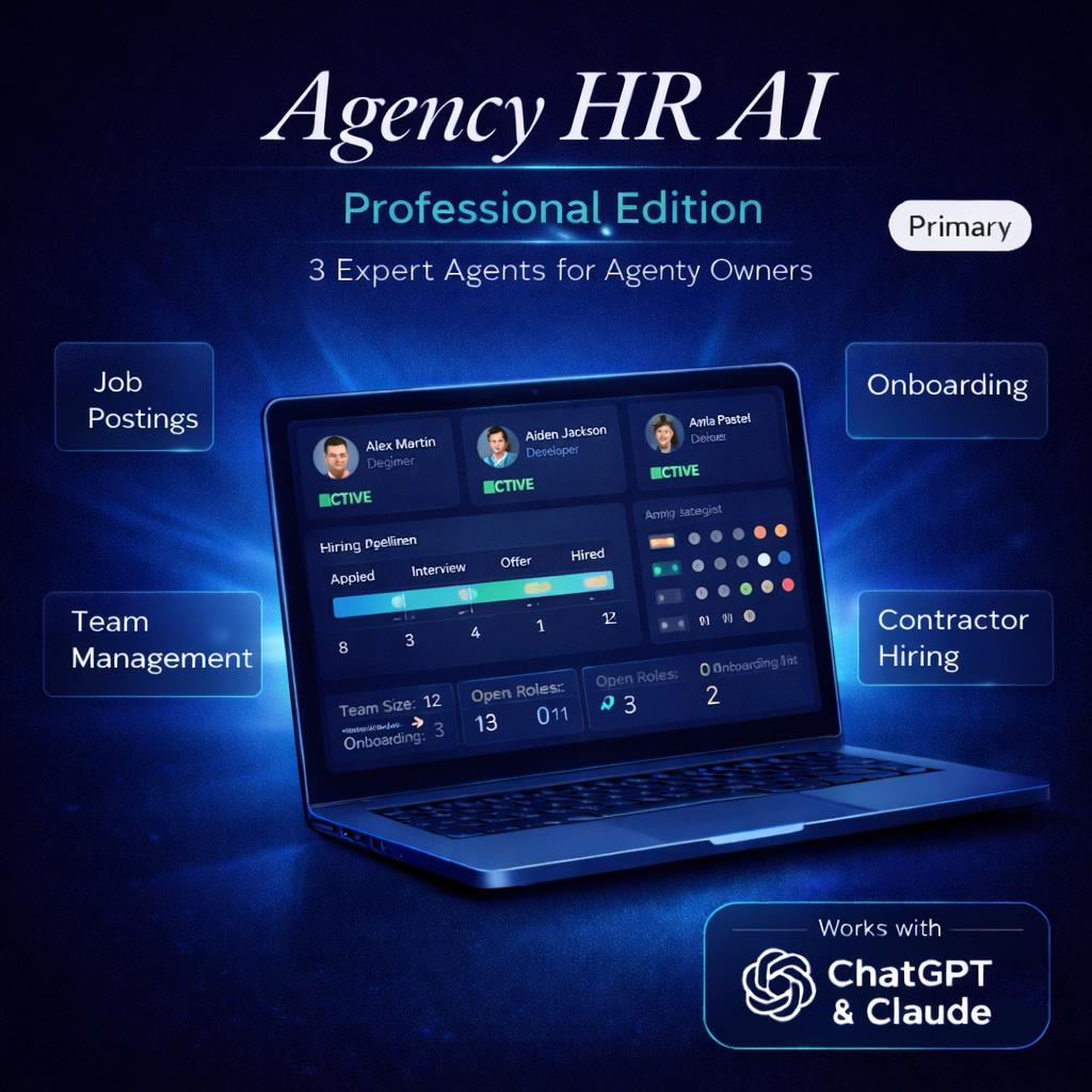 Stop struggling with inconsistent hiring, chaotic onboarding, and reactive employee relations. This Professional Edition delivers three specialized HR AI agents with 8-12 years of expertise each β€” ready to deploy in ChatGPT, Claude, or as a Universal Agent.