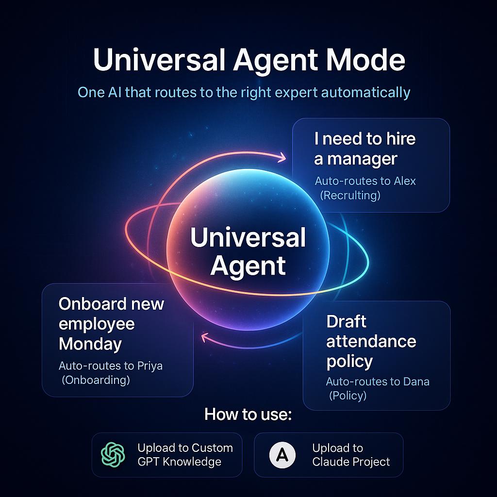 Optional: Use Universal Agent mode to upload the entire system to ChatGPT Knowledge or a Claude Project for automatic agent selection