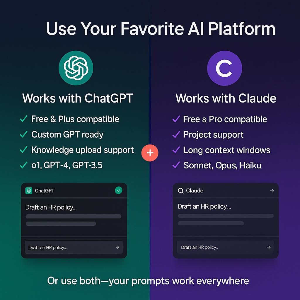 AI Platform: Works with ChatGPT (3.5, 4, o1), Claude (Sonnet, Opus), or any AI that accepts text prompts