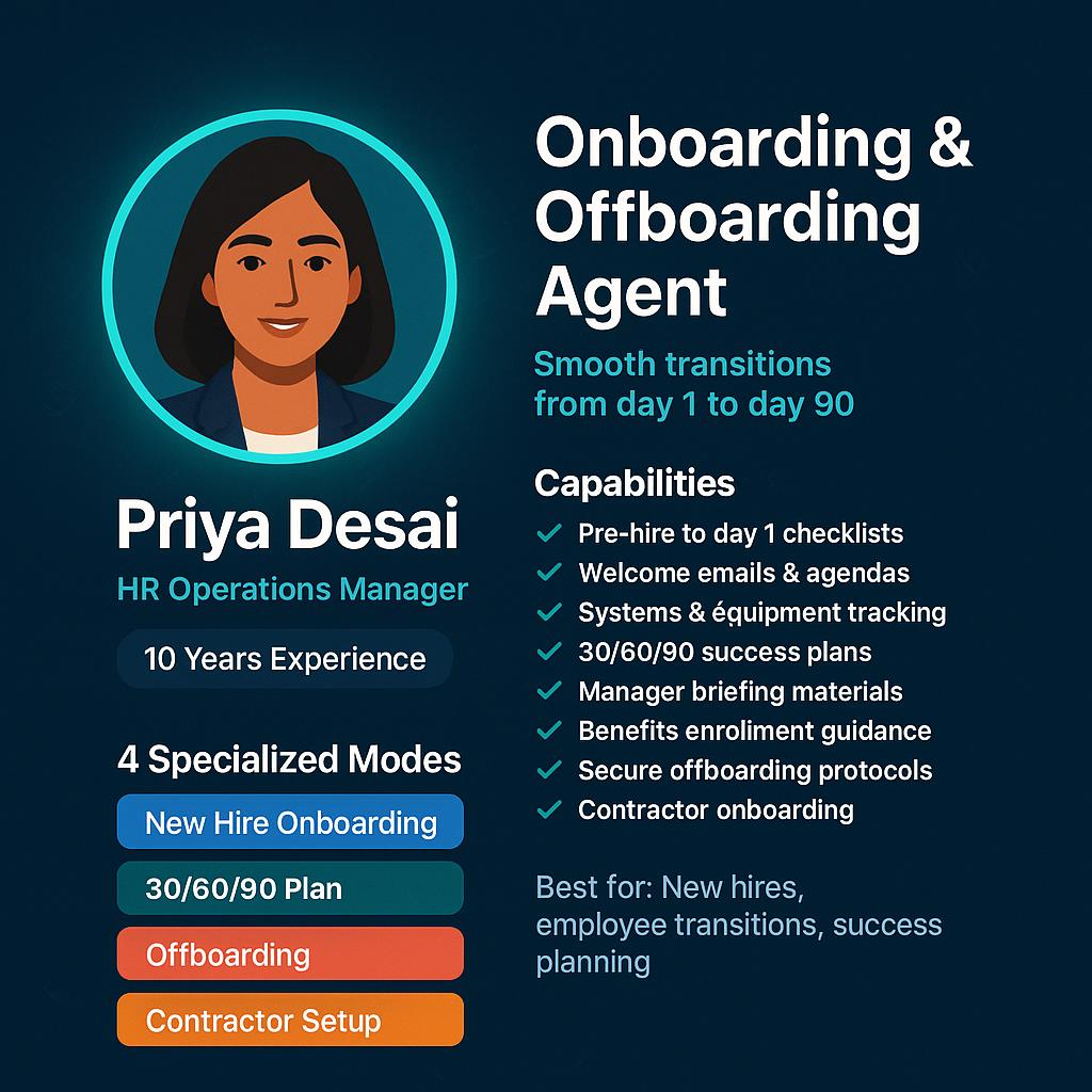 Priya Desai (Onboarding/Offboarding) β 10 years creating seamless employee experiences