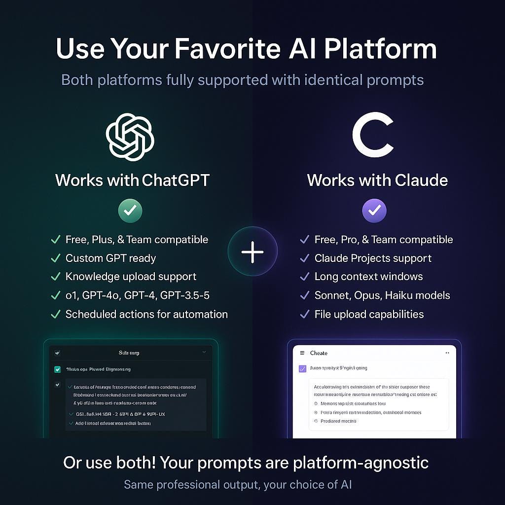 Requires ChatGPT Plus or Claude Pro for best results (works with free versions too)