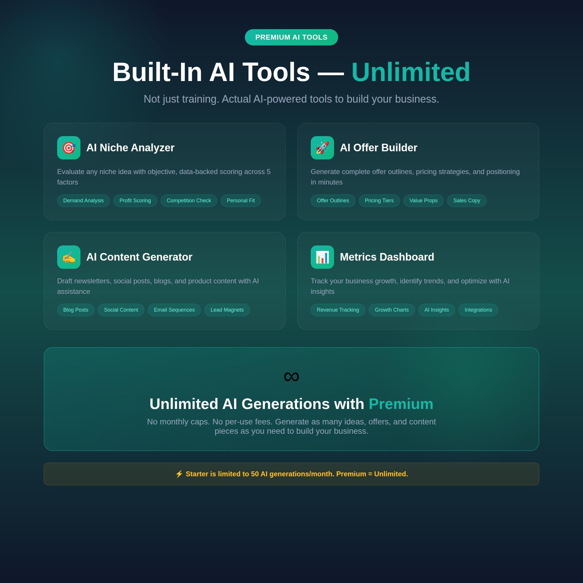 Prompts span eight areas: Marketing & Advertising, Social Media, Email/Customer Comms, Local SEO & Web, Branding, Promotions/Seasonal, Reviews/Reputation, and Sales/Lead Nurturing.