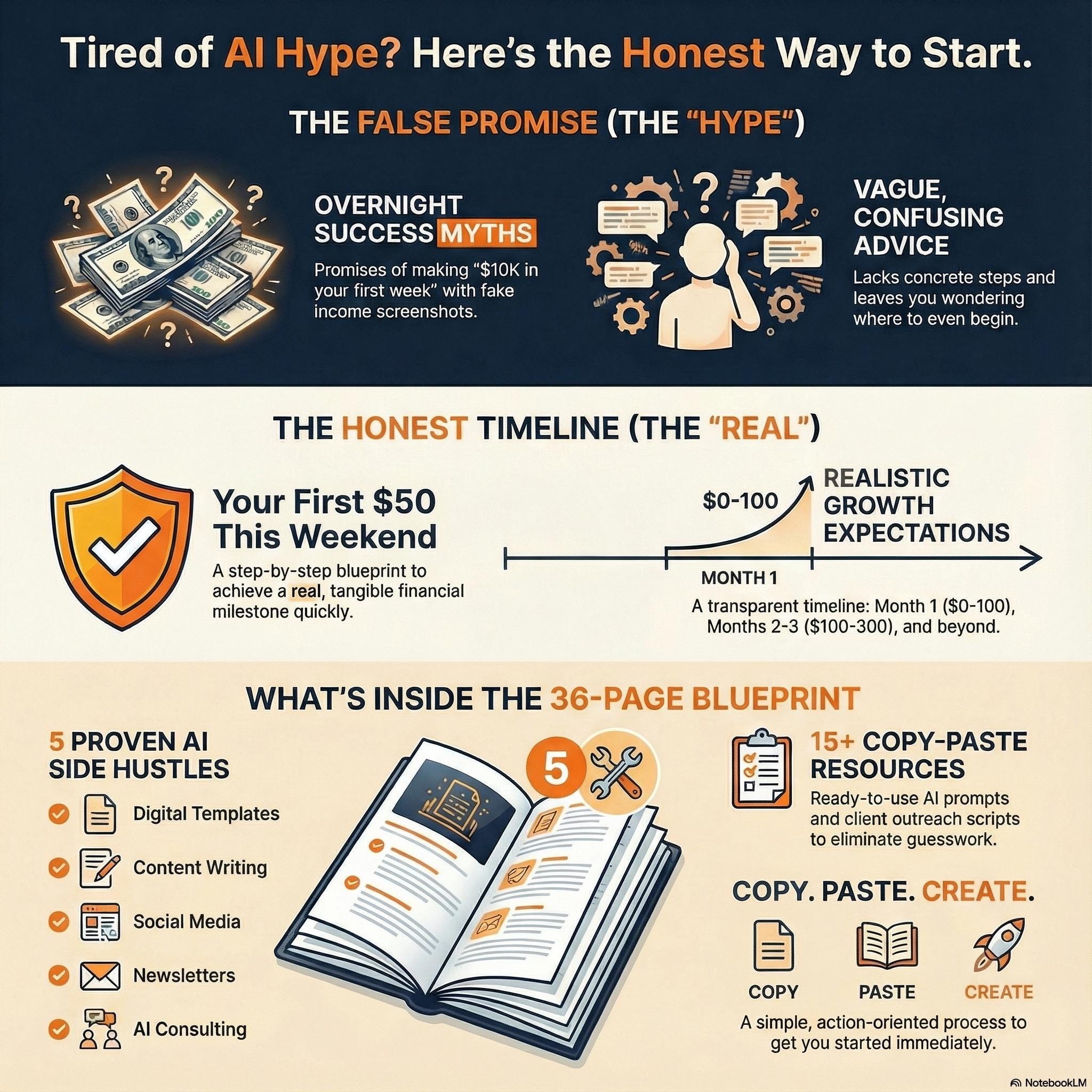 PDF Guide: 5 AI side hustles you can start this weekend — great for seeing if our style is right for you.