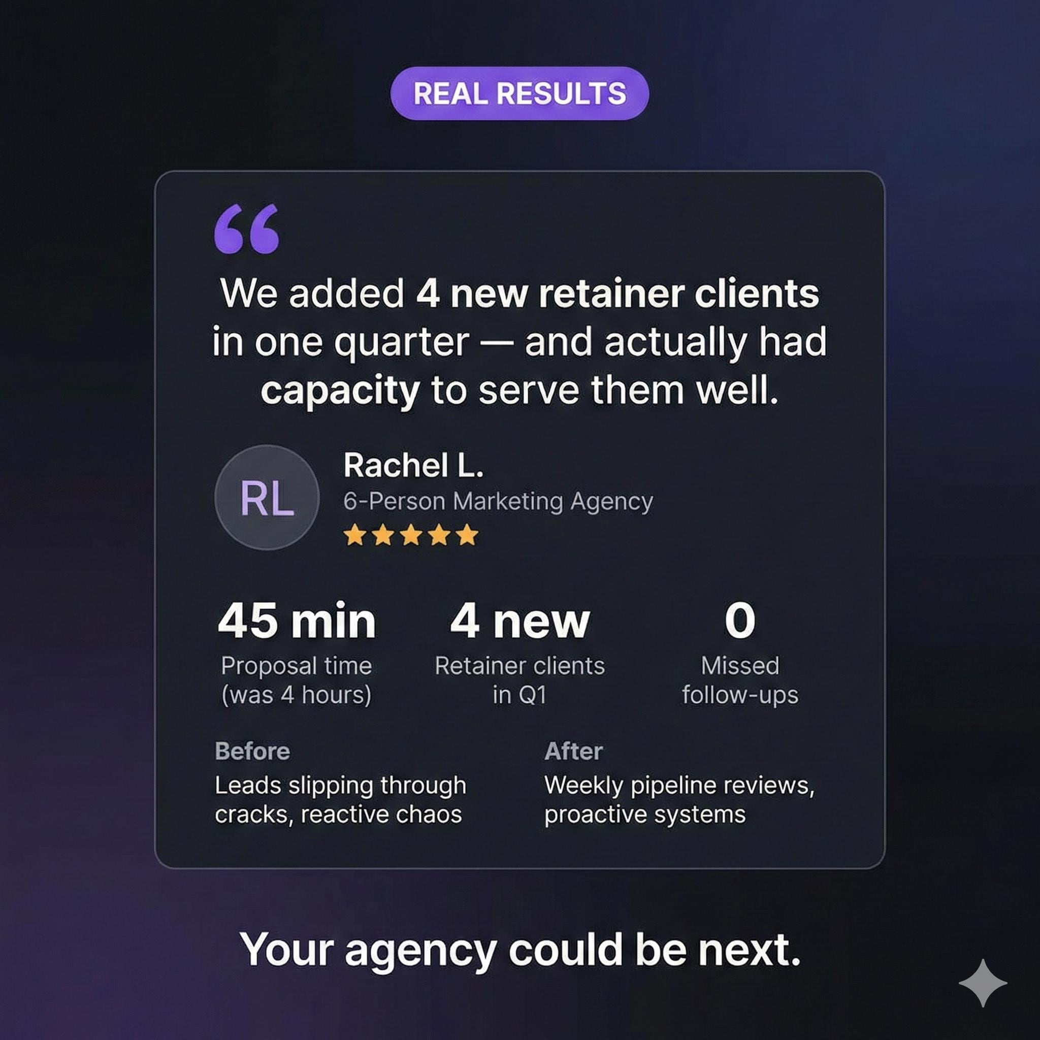 She added 4 new retainer clients in one quarter β€” and actually had the capacity to serve them well.