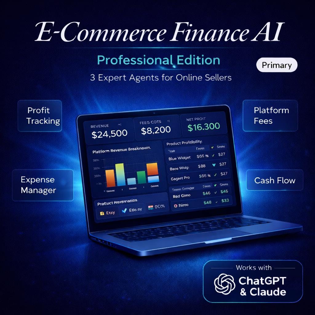 Finally understand your real profit margins. This 3-agent ChatGPT system tracks expenses across platforms, calculates true product profitability, and manages cash flow β built for Etsy, Shopify, and Amazon sellers who need financial clarity.