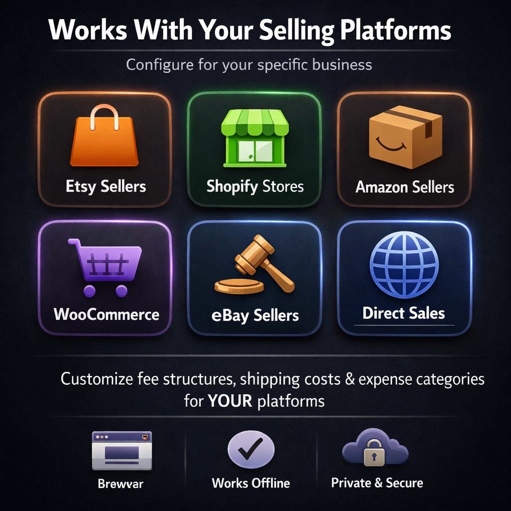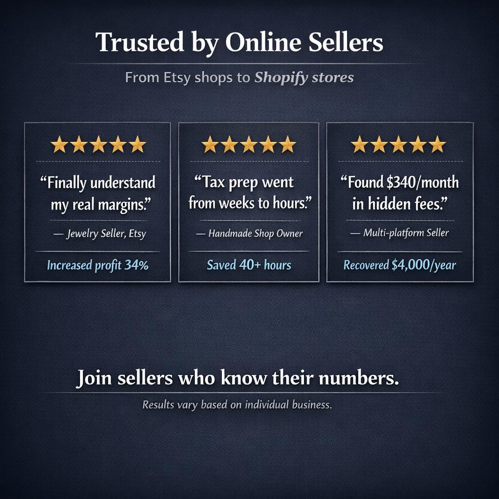 β†’ Fee breakdown by platform (Etsy, Shopify, Amazon)
