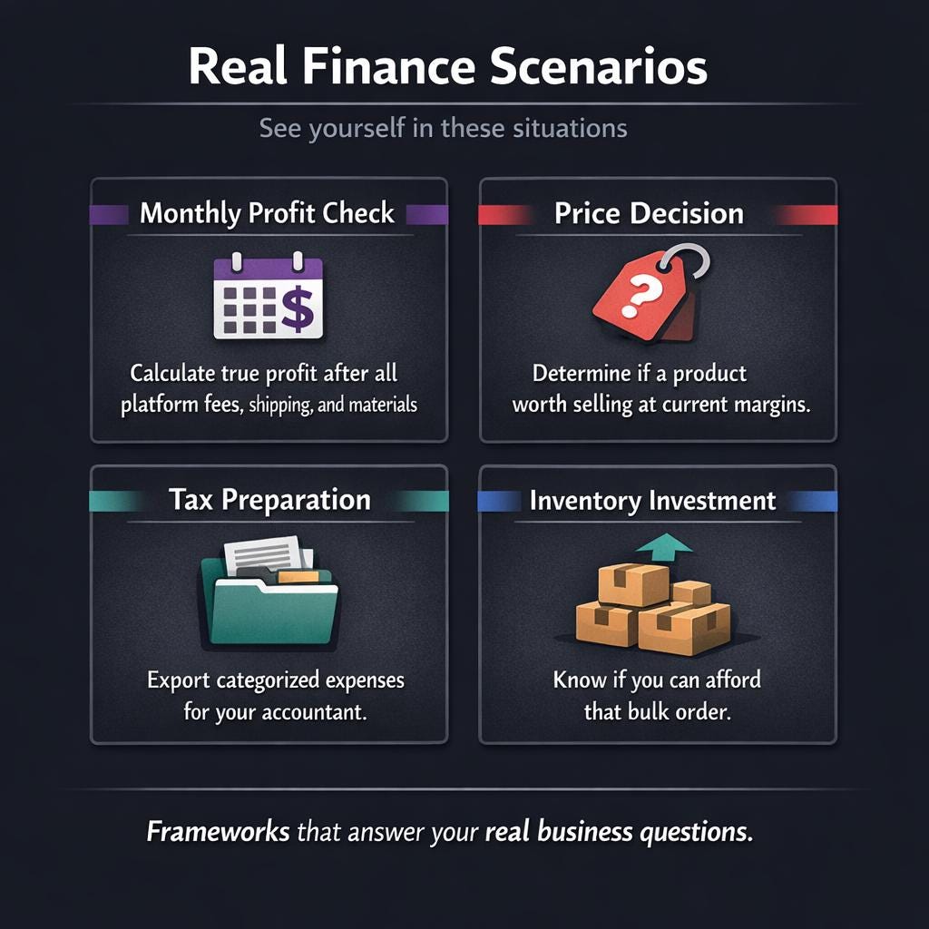 This won't magically 10x your revenue. It gives you CLARITY β€” the financial understanding that lets you make smarter decisions about pricing, products, and growth.