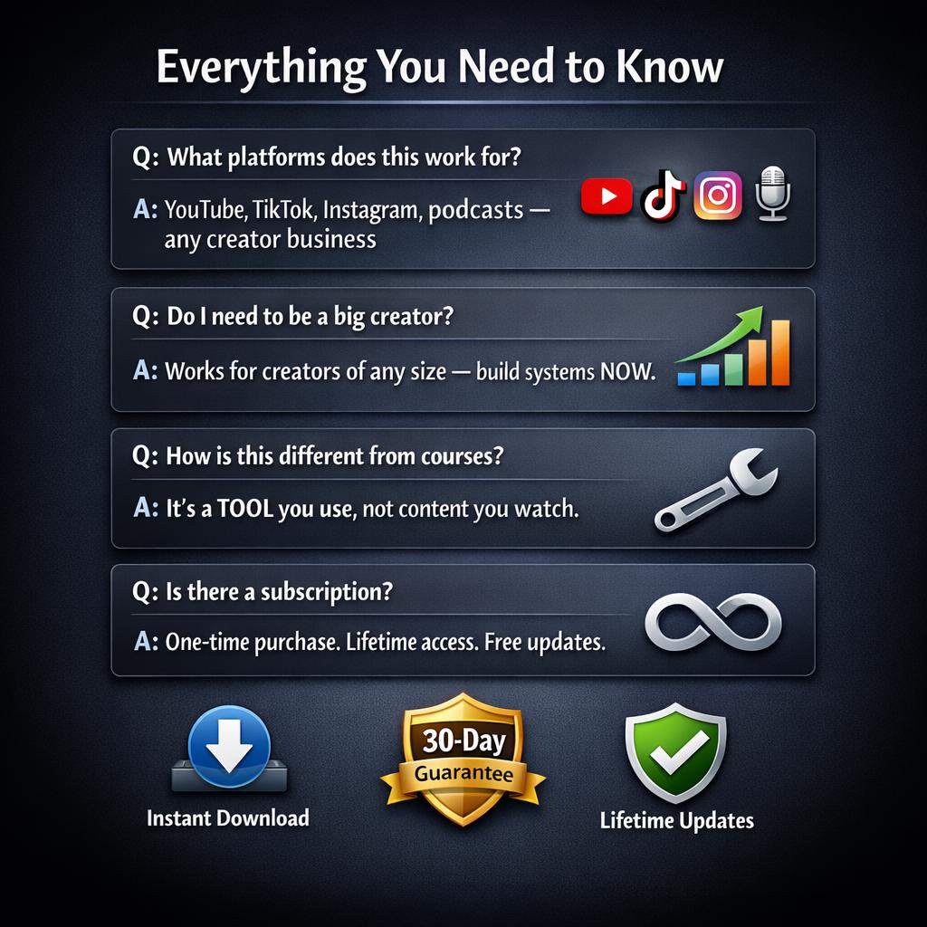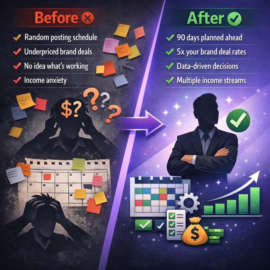 βœ— Generic advice (everything customizes to YOUR creator business)