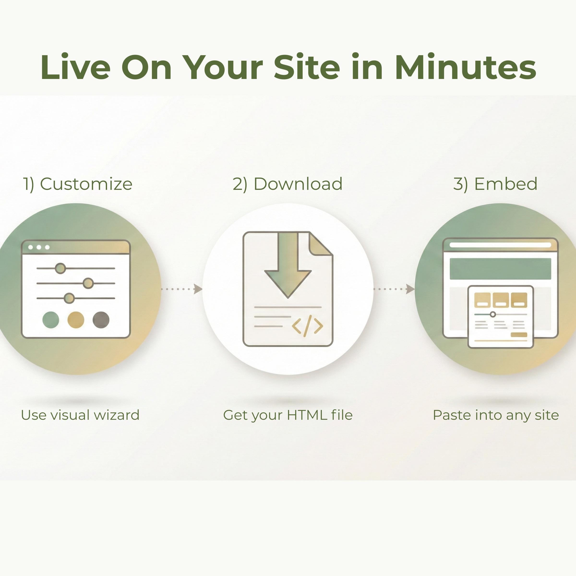 3️⃣ EMBED — Paste into any website builder's "Custom HTML" block (Squarespace, Wix, Showit, WordPress, Shopify—they all work!)