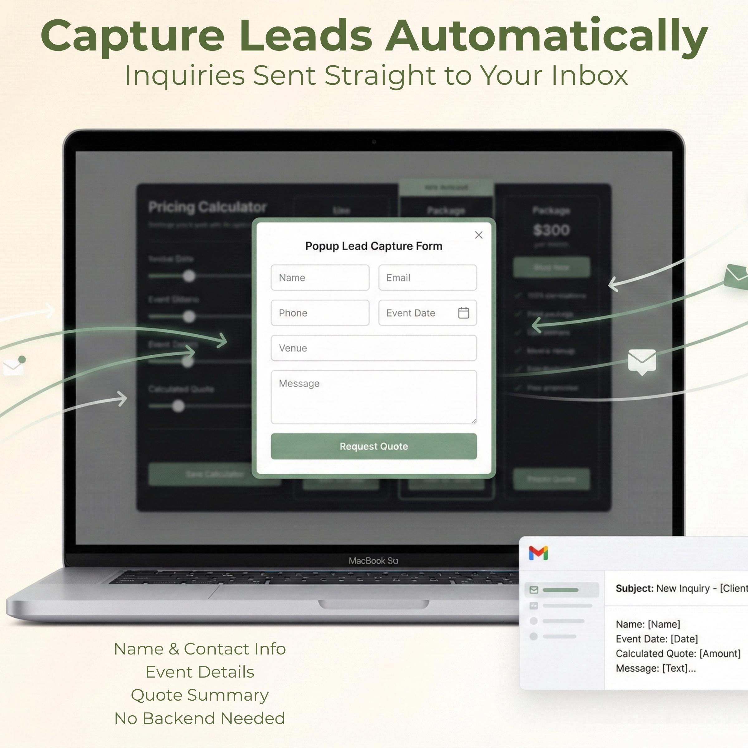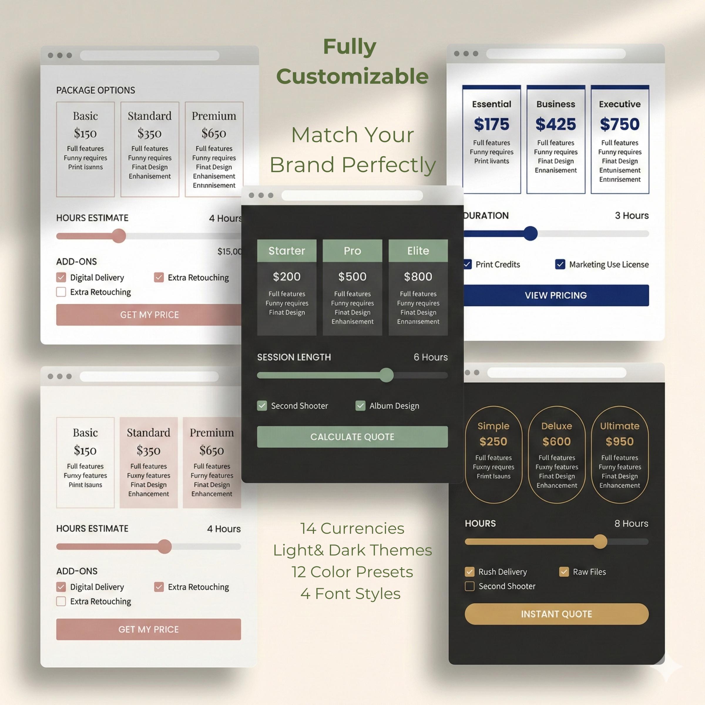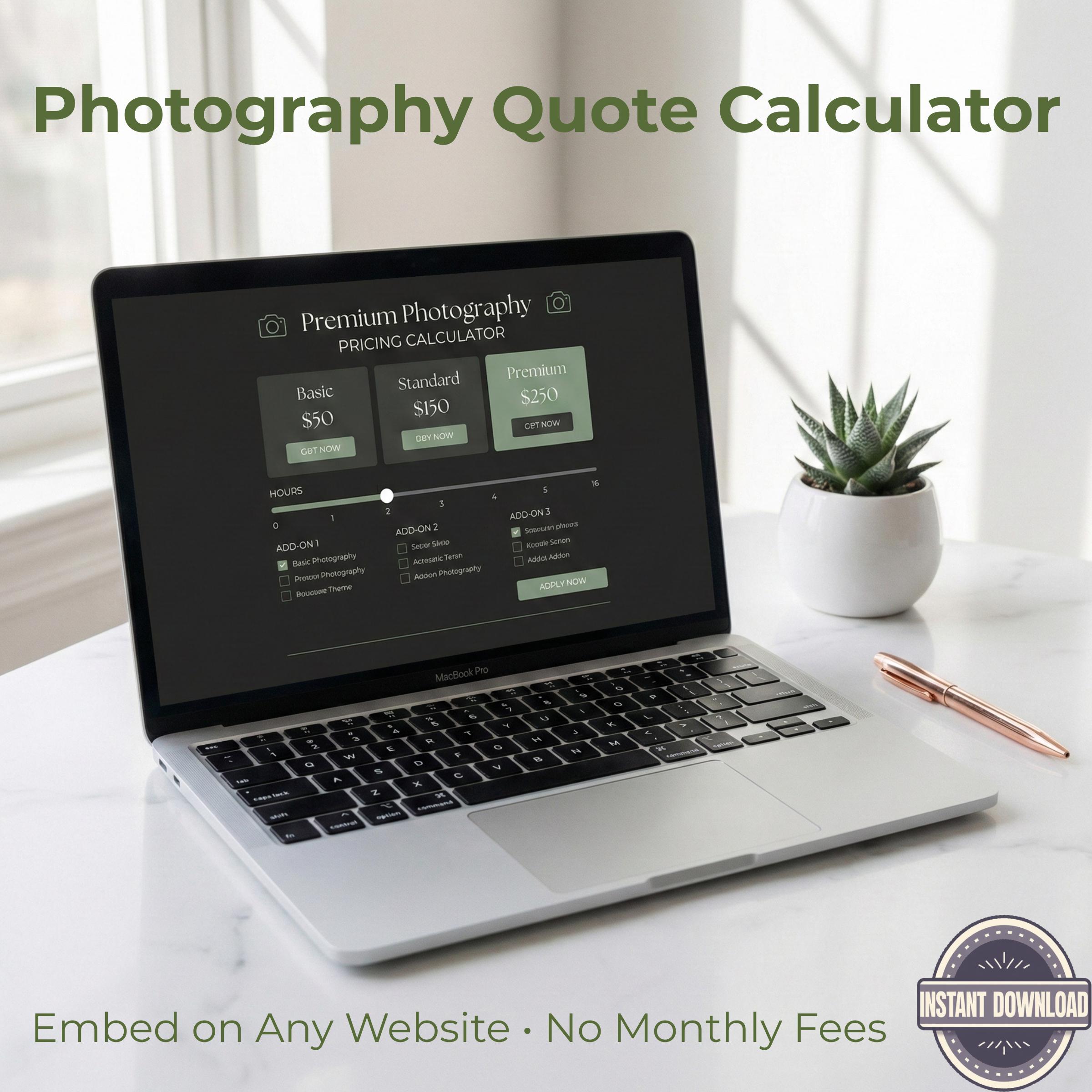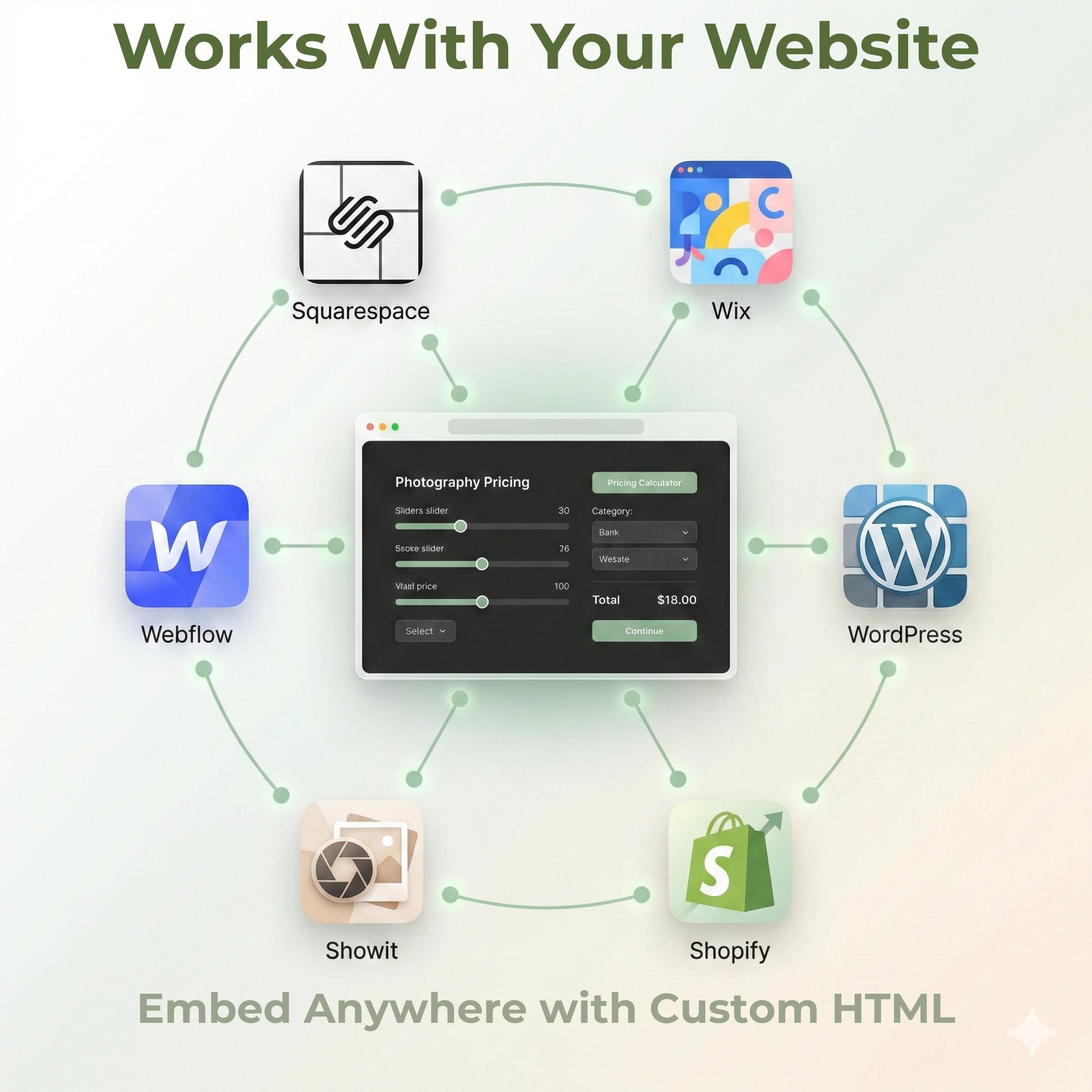 Photography Pricing Calculator | Website Embed, Lead Capture (No Fees)